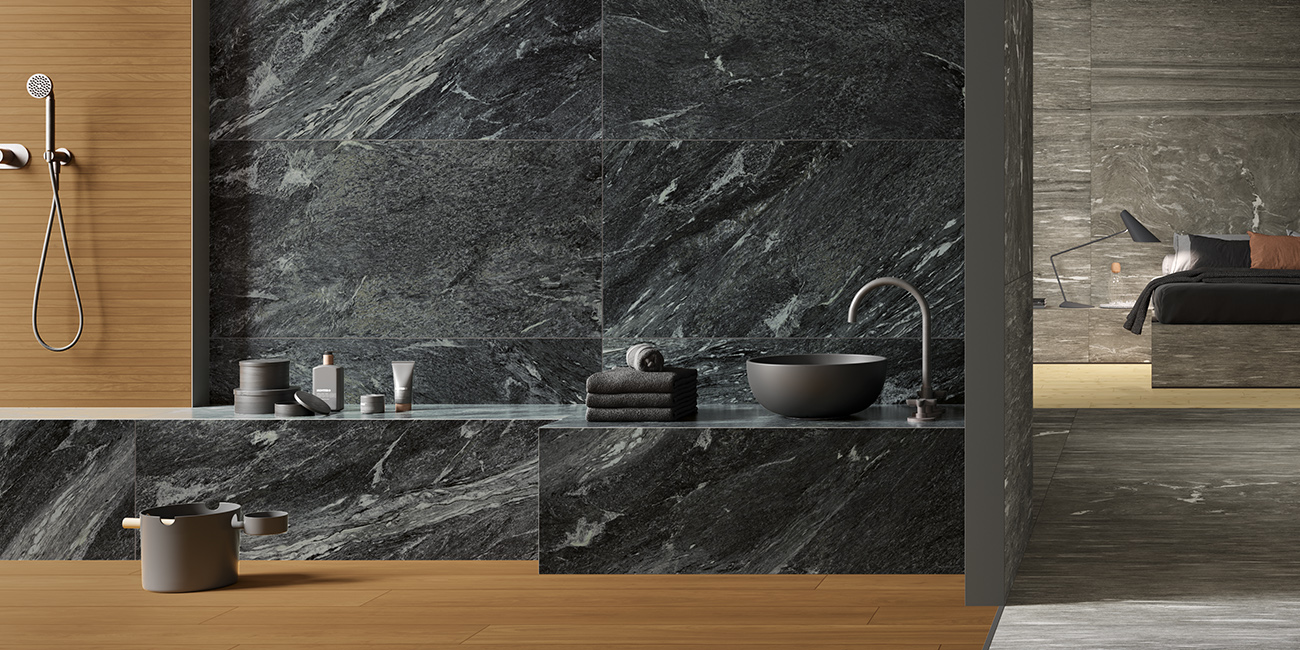 - Skyfall — можно выбрать из цветов Бьянко Парадизо, Гриджио Альпино или Неро Смеральдо в формате 60х120 см;