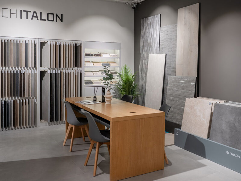 Салон является воплощением интерьеров, сошедших со страниц каталогов Italon, и сочетает в себе последние модные тенденции в мире керамогранита, дополненные изысканными декорами и сантехникой из керамогранита серии Italon Home.