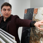 После презентации представители бренда вместе с гостями оценили плиту в реальности, отметив ее реалистичность и фактурность поверхности.