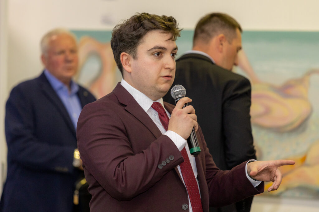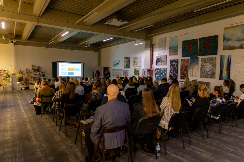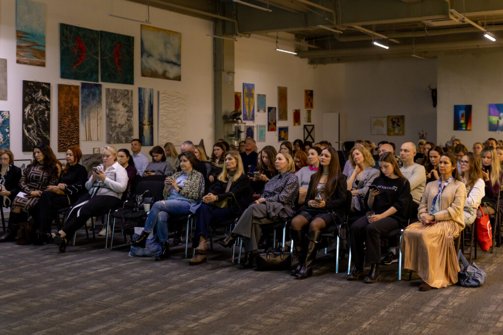 Презентацию по традиции организовали в конференц-зале ТЦ, напоминающем картинную галерею. Все это вкупе являлось прекрасным дополнением и отражало атмосферу коллекции. Приветственное слово взял директор шоурума Италон, он поприветствовал собравшихся и передал слово специалисту по работе с ключевыми клиентами Марку Мамину.