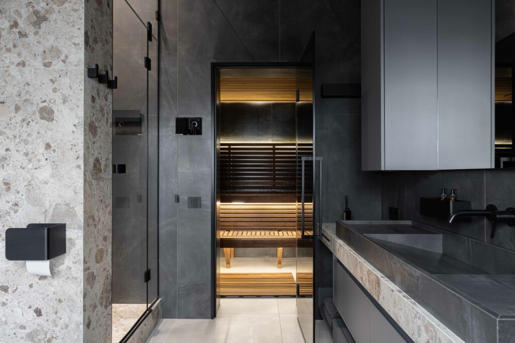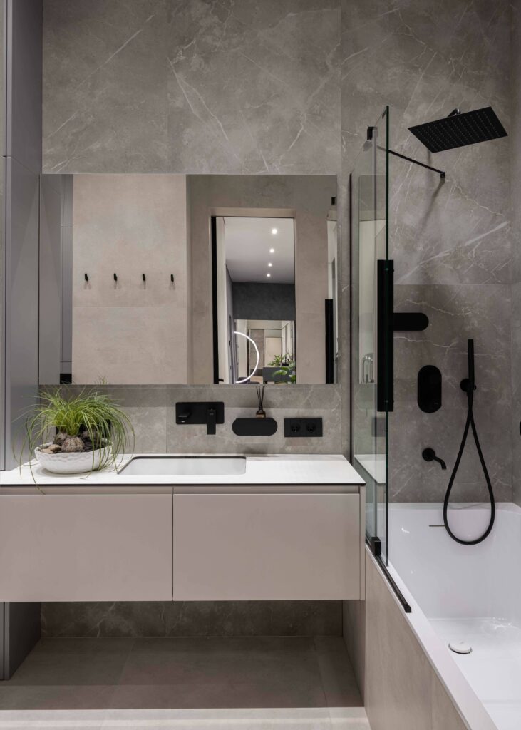 Материалы Italon органично вписываются в такой подход. Мария отмечает, что им близка логика коллекций: продуманная палитра, крупные форматы, сильные нейтральные позиции и акцентные решения в одной гамме. Чаще всего студия использует именно такое сочетание: спокойная по тону базовая плитка большого формата и одна более выразительная стена. Ассортимент Italon позволяет им строить чистые, цельные интерьеры и при этом оставаться гибкими под разные задачи и бюджеты.