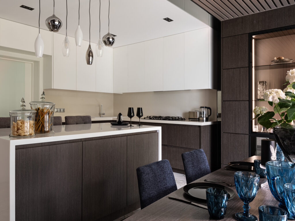 Отличия проявляются прежде всего в масштабе и характере среды. В частных интерьерах дизайнер работает с повседневной жизнью семьи — со спальнями, кухнями, хранением, привычками и ритмом. Здесь важно создать пространство, в котором комфортно находиться ежедневно, где решения не начинают утомлять со временем.