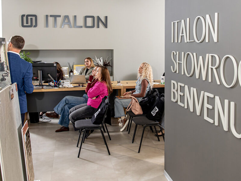 В местах общего пользования плитка под мрамор с аккуратными прожилками — Charme Pearl 60×60, она уложена по диагонали с черными тоццетто.