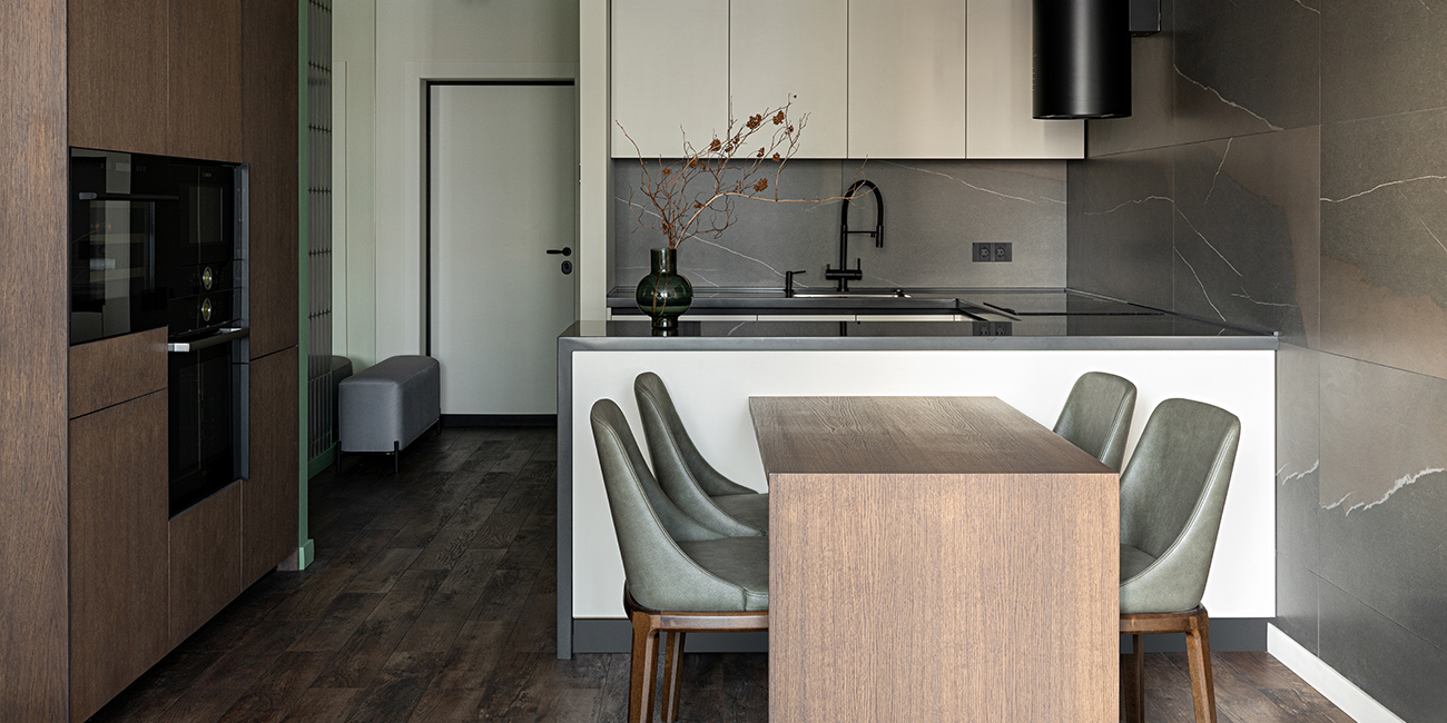 Светлая мебель, минималистичные формы и природные оттенки делают пространство открытым и воздушным, поддерживают визуальную целостность и одновременно подчеркивают индивидуальность каждой функциональной зоны.