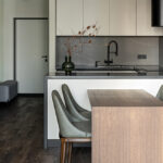 Светлая мебель, минималистичные формы и природные оттенки делают пространство открытым и воздушным, поддерживают визуальную целостность и одновременно подчеркивают индивидуальность каждой функциональной зоны.