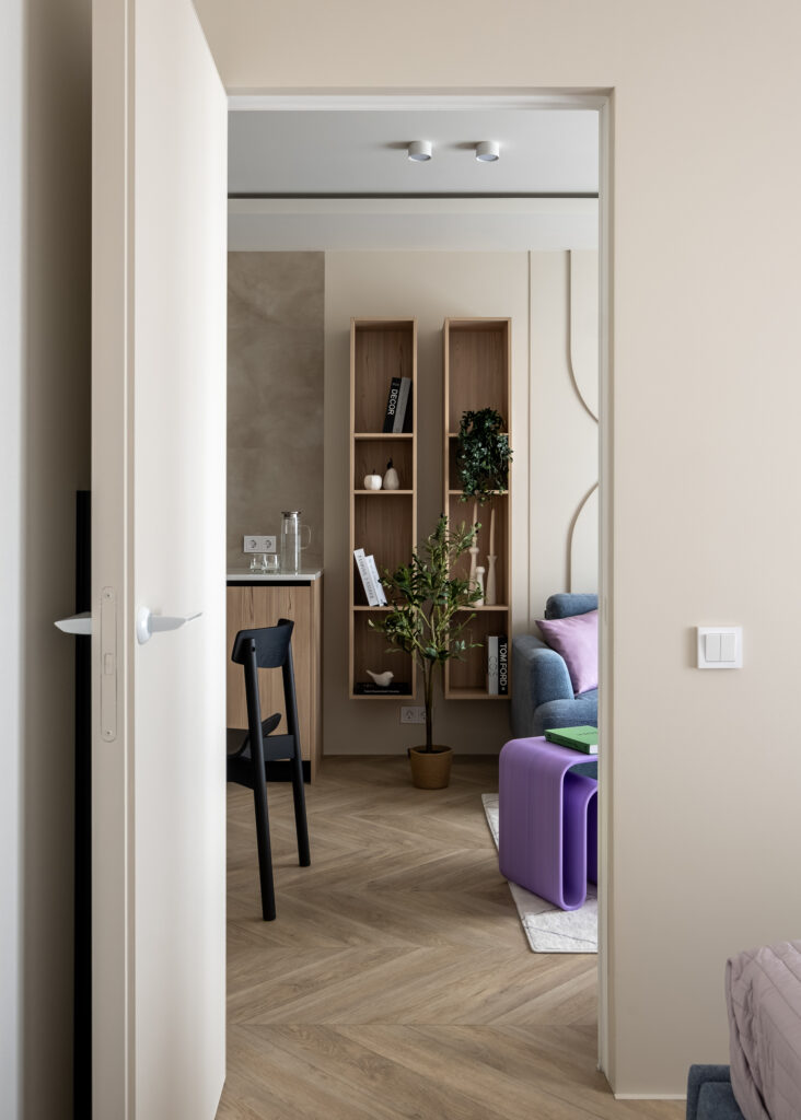 Перед дизайнером Мария Ничипоренко стояла задача спроектировать интерьер, в котором будет легко жить и его возможно адаптировать под себя будущим жильцам.