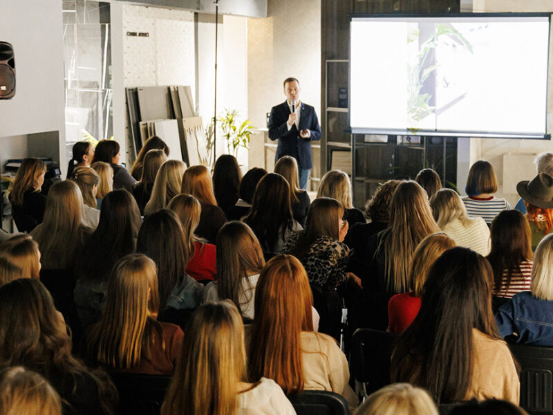 «Помощь в решении задачи пришла из Instagram-страницы фабрики Италон. В одном из проектов я заметила керамогранит под дерево Maison Walnut, он идеально ответил на все требования проекта, как стилистические, так и эксплуатационные. Наличие мультиформатности в линейке Maison дало возможность применить плиты размером 30х120 и 20х120 и тем самым уйти от регулярности одинаковых текстур на большой поверхности фасада размером 10х6м. Кстати, количество неповторяющихся текстур более 20-ти в каждом размере керамогранита» — делится автор проекта.
