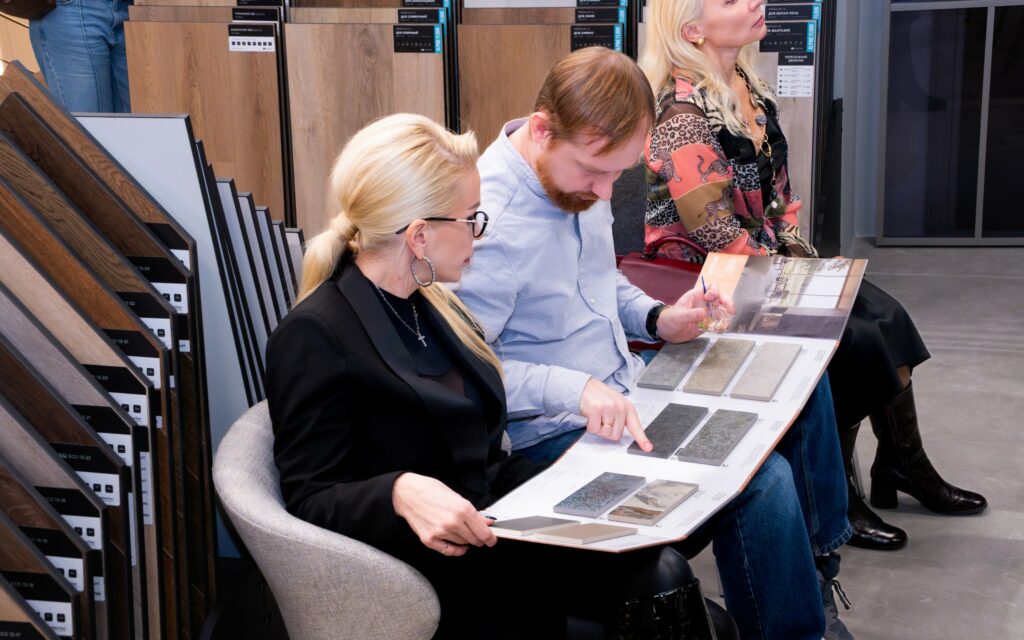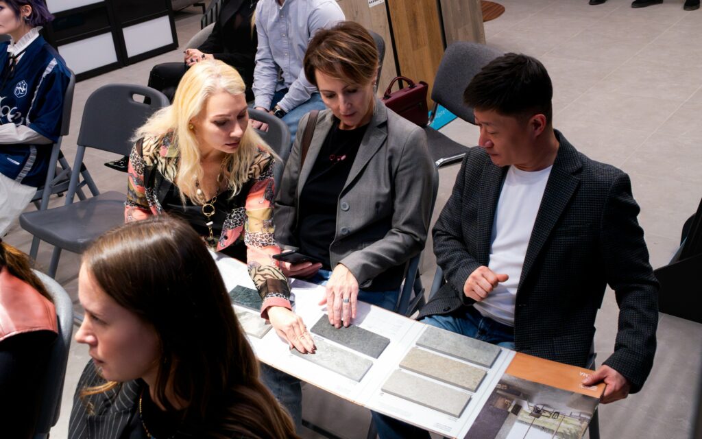 После презентации спикеры представили плиту в полной красе, дав насладиться гостям тактильными ощущениями от поверхности нового керамогранита, и ответили на все интересующие вопросы.